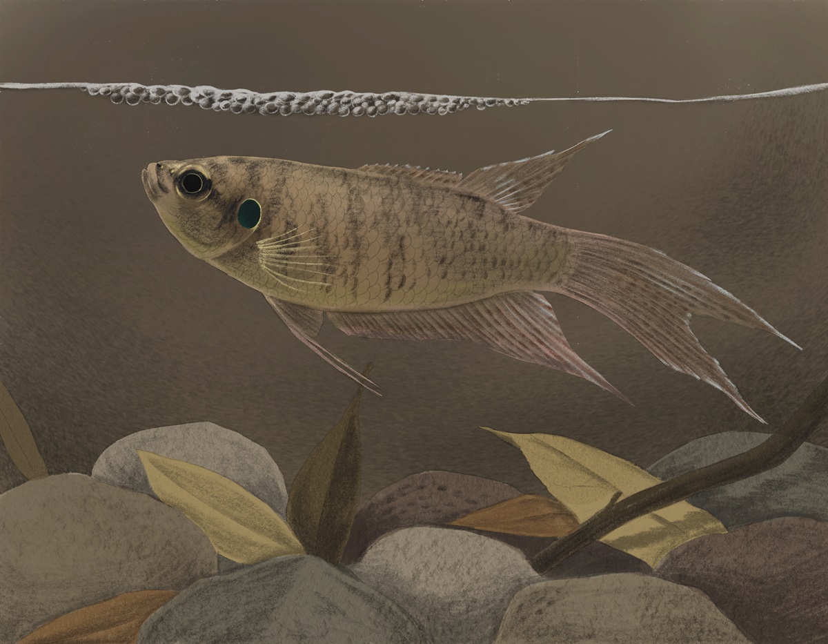 香港斗鱼栖息在一些缓慢的淡水溪流和沼泽中,喜欢以植物和其根部作为居所。它的鳃部有辅助性呼吸器官,帮助在缺氧的水中呼吸。具有地域性的香港斗鱼会张开鱼鳍来警示入侵者,有时更会为「霸地盘」而大打出手。雄性会吐泡筑巢,在交配后把受精卵放在气泡中照顾,守护气泡巢直至小斗鱼孵化。| 科 | 丝足鲈科 |